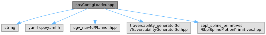 #include <string>#include <yaml-cpp/yaml.h>#include <ugv_nav4d/Planner.hpp>#include <traversability_generator3d/TraversabilityGenerator3d.hpp>#include <sbpl_spline_primitives/SbplSplineMotionPrimitives.hpp>